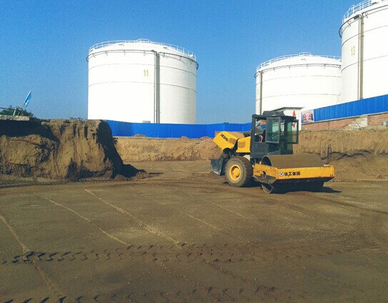20噸壓路機(jī)在工作分層碾壓